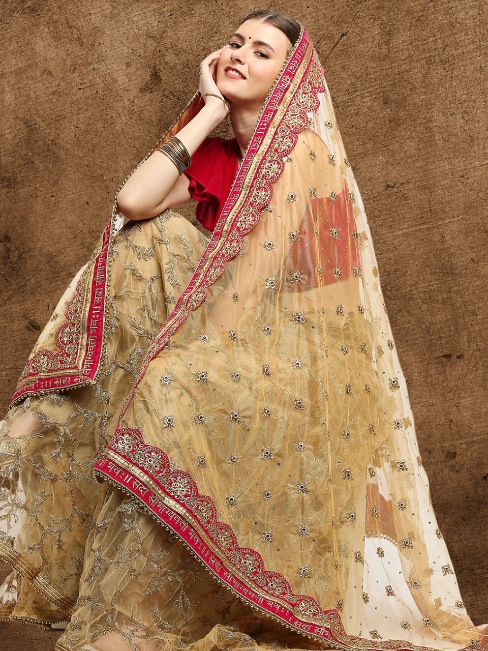 - This gorgeous net dupatta in auspicious colour can be used as a bridal Dupatta /Chunri to cover head and shoulders during functions and ceremonies. It can also be used to visit religious places and functions like mata ki chowki etc. This dupatta will be a wonderful addition to your wedding wardrobe.